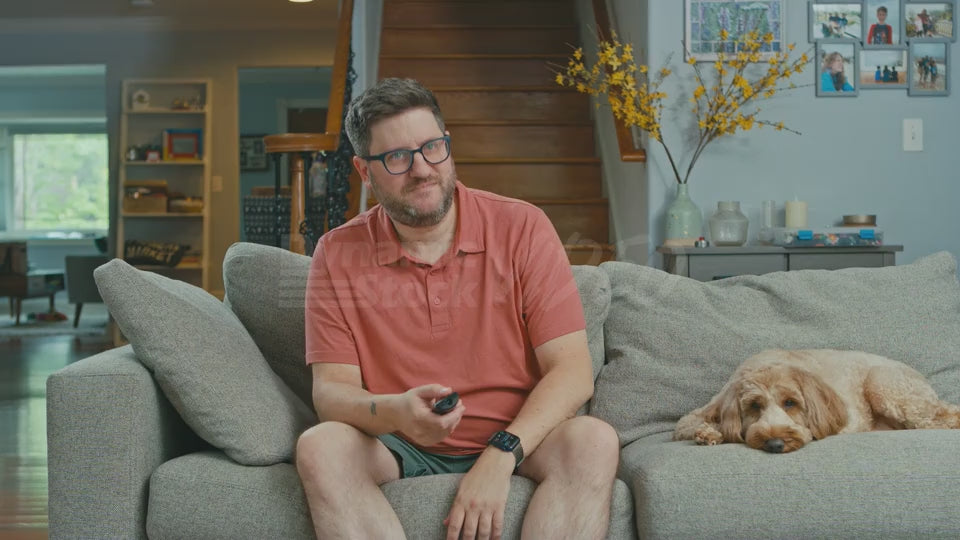 Man on Couch Finishes Watching a Movie About an Orangutan Who Plays Football and Pretends He Is the Orangutan from the Movie
