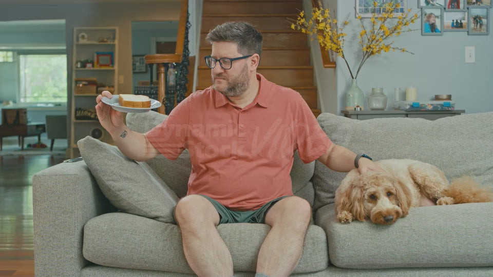 Man on Couch Saying Dirty Words to a Sandwich