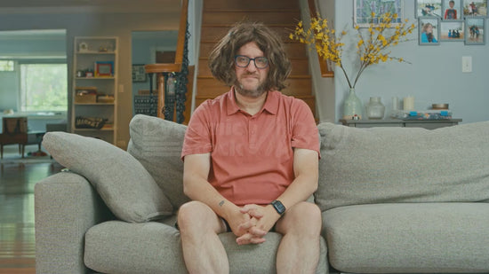 Man on Couch Wearing Attractive Wig